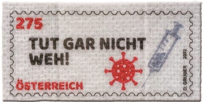 이어 오스트리아는 2021년 9월 16일에도 코로나 팬데믹 관련하여 미니어처 마스크 모양의 액면가 2.75유로의 우표를 발행했다. 이 우표는 유럽 FFP2 표준의 여과 소재로 만들어졌으며, 공기 중 입자의 최소 94%를 걸러낼 수 있다. 마스크 우표는 실로 만든 귀걸이를 함께 제공했으나, 마스크 크기가 6cm×4.1cm에 불과해 사실상 사람보다 인형에 더 잘 맞는 크기라고 보면 된다.